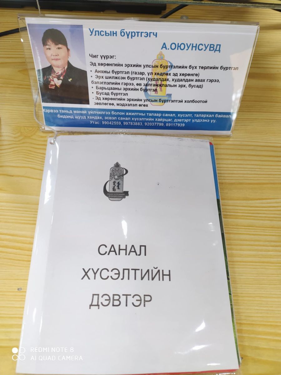 Манай байгууллагаас иргэдэд үзүүлж буй төрийн үйлчилгээний чанар, хүртээмжийн талаар үнэлгээ өгөх, санал хүсэлт, өөрийн сэтгэгдлээ бичих боломжтой “Санал хүсэлтийн дэвтэр”-ийг байршууллаа.