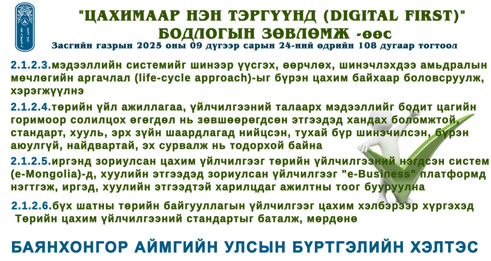 "ЦАХИМААР НЭН ТЭРГҮҮНД (DIGITAL FIRST)" БОДЛОГЫН ЗӨВЛӨМЖ -өөс