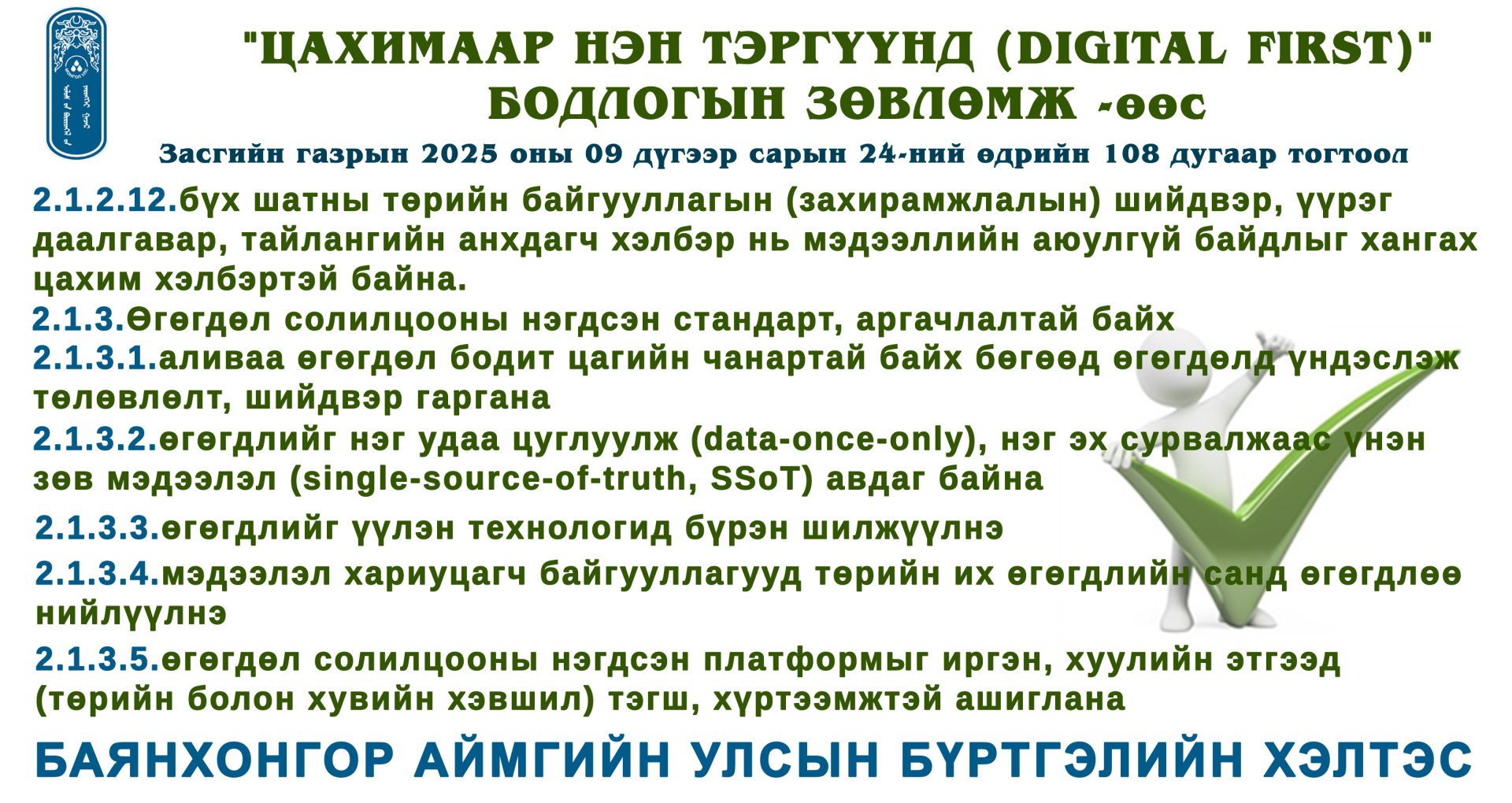 "ЦАХИМААР НЭН ТЭРГҮҮНД (DIGITAL FIRST)" БОДЛОГЫН ЗӨВЛӨМЖӨӨС