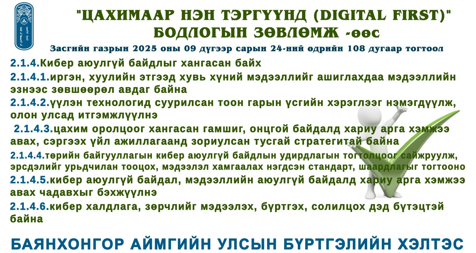 "ЦАХИМААР НЭН ТЭРГҮҮНД (DIGITAL FIRST)" БОДЛОГЫН ЗӨВЛӨМЖӨӨС